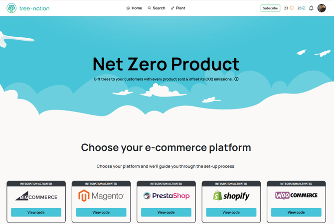 - Choose your e-commerce platform and click on the ‘View code’ button to access the configuration options for your Net Zero Product.