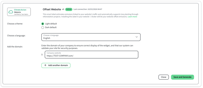 Note: Use the Climate Website label only for one domain. If you have several domains, please create a separate company forest. This is to ensure accurate measurement and avoid greenwashing.
