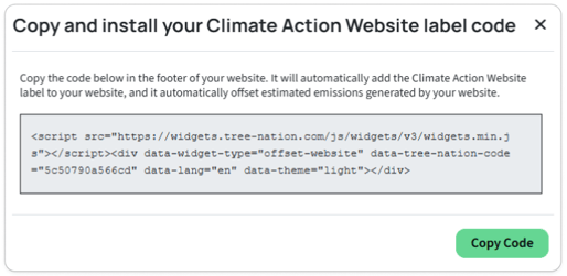 Showcase your environmental commitment on your website by installing our Climate Action Website label