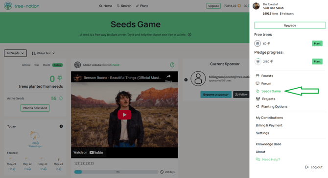 Seeds is an online game that unlocks the power of the Tree-Nation community by growing seeds into real trees, drop by drop