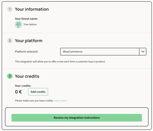 Congrats, you have installed the integration 🎉. To activate the integration and tree planting, you would need credits.