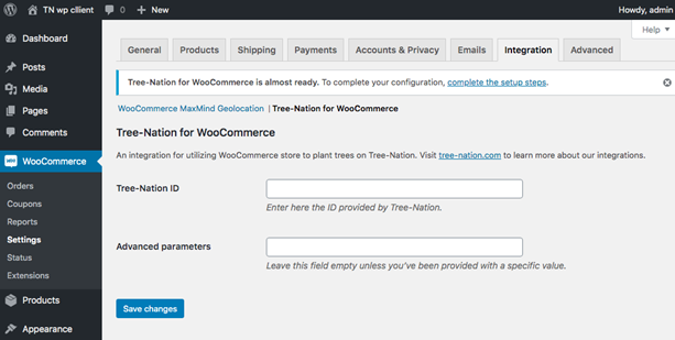 Your unique Tree-Nation Integration ID will be generated — it looks like this: